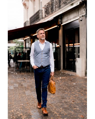 Quick view Remove from Wishlist Add to Wishlist Add to cart BLUE LINEN BLEND WAISTCOAT Price €180.00 Blue Linen Blend Waistcoat Finished with genuine corozo buttons, this waistcoat is crafted in PORTUGAL